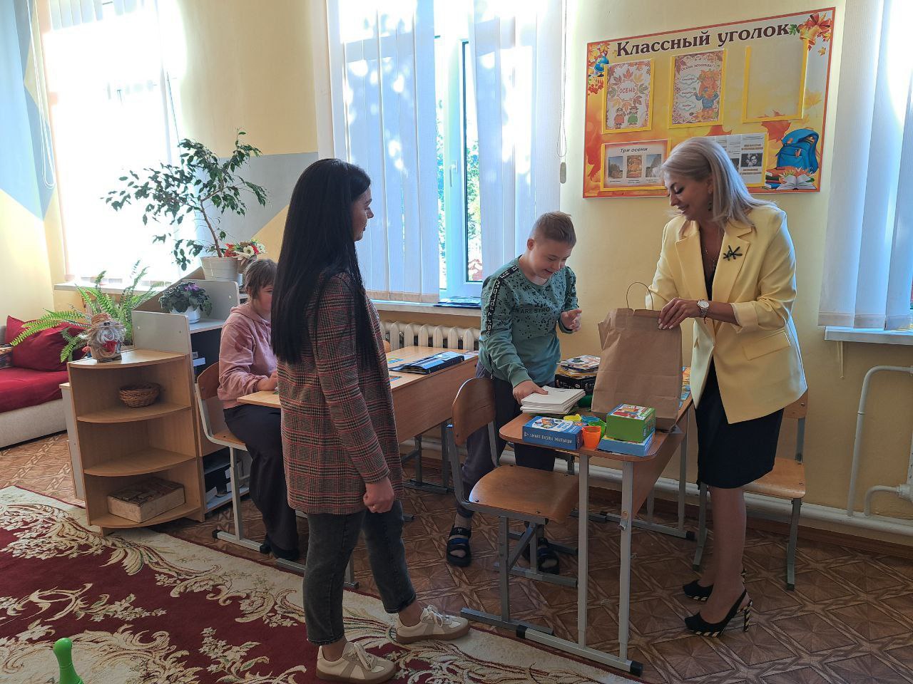 Инна Тарасевич лично вручила детям наборы канцелярских принадлежностей и развивающие игры.