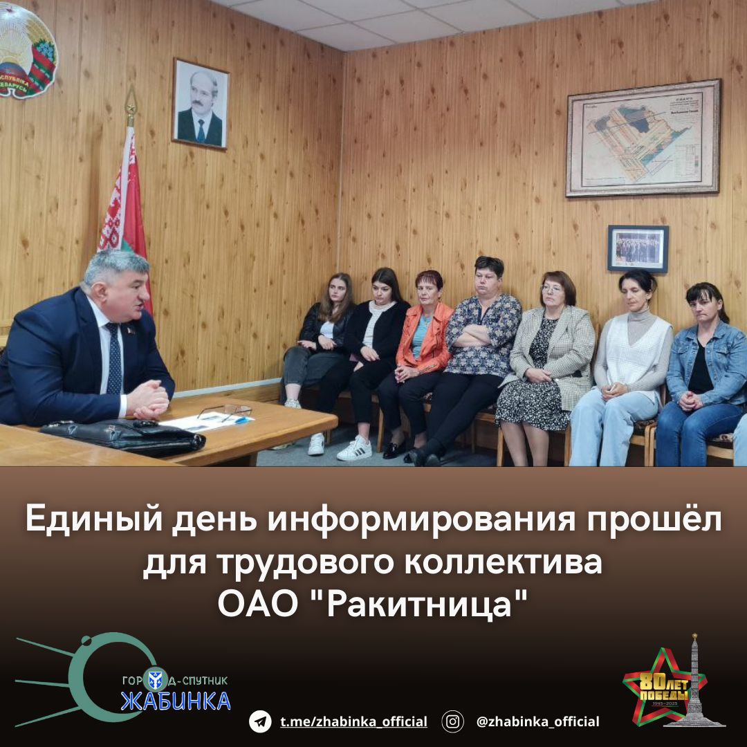 «День народного единства: значение мира и согласия» – главная тема сентябрьского Единого дня информирования. О ценностях, которые отражаются в единстве нашего народа, об основе для успешного развития Беларуси говорили на встрече с трудовым коллективом ОАО "Ракитница".