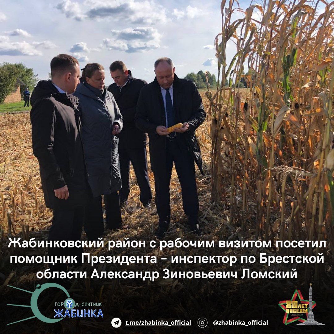 Александр Зиновьевич посетил ОАО «Жабинковский», где ознакомился с технологией уборки кукурузы и процессом её трамбовки в силосную яму. Также он проинспектировал поля хозяйства, оценил качество посевов культур и отметил важность соблюдения технологических этапов.