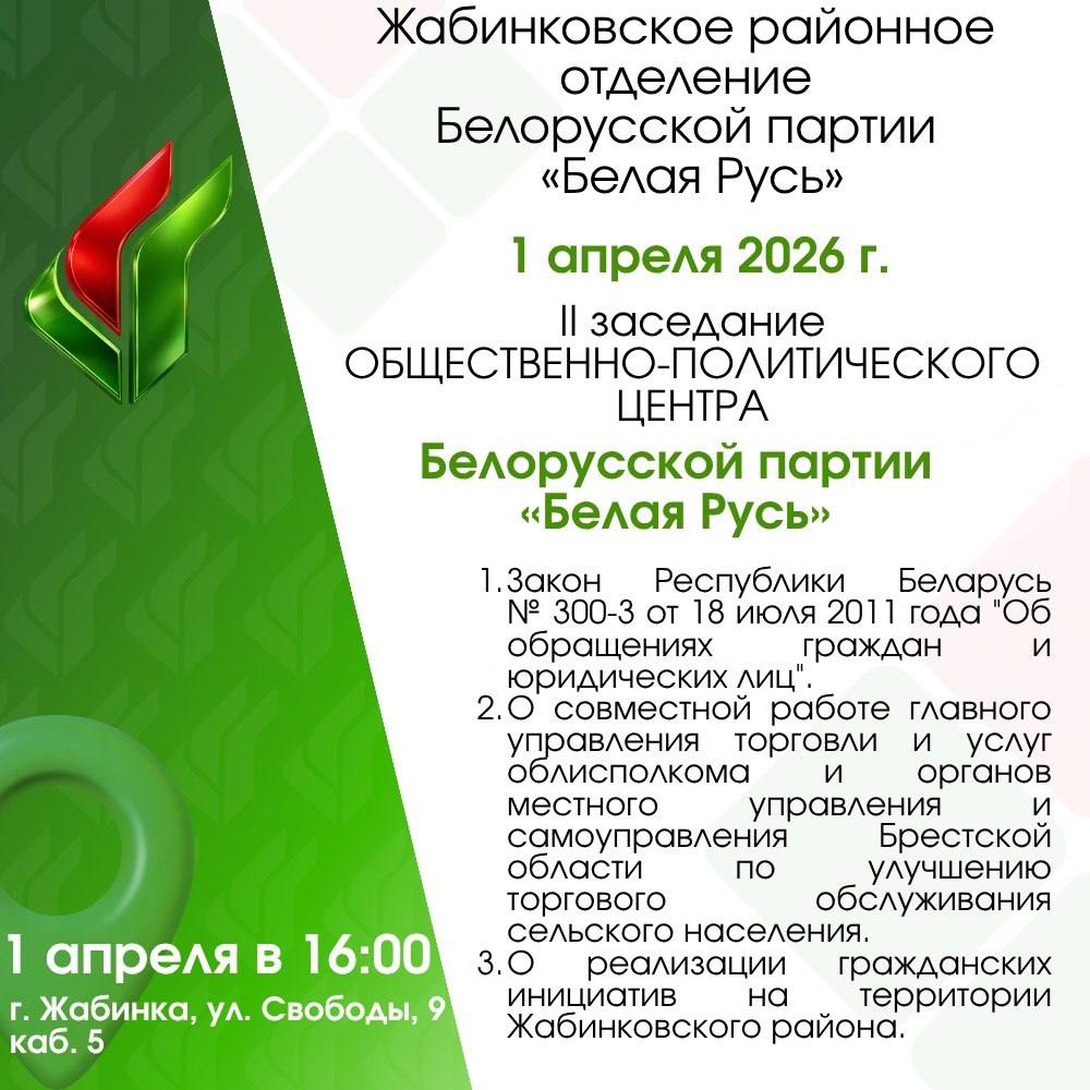 1 апреля в 16:00 состоится второе заседание Общественно-политического центра Белорусской партии «Белая Русь».