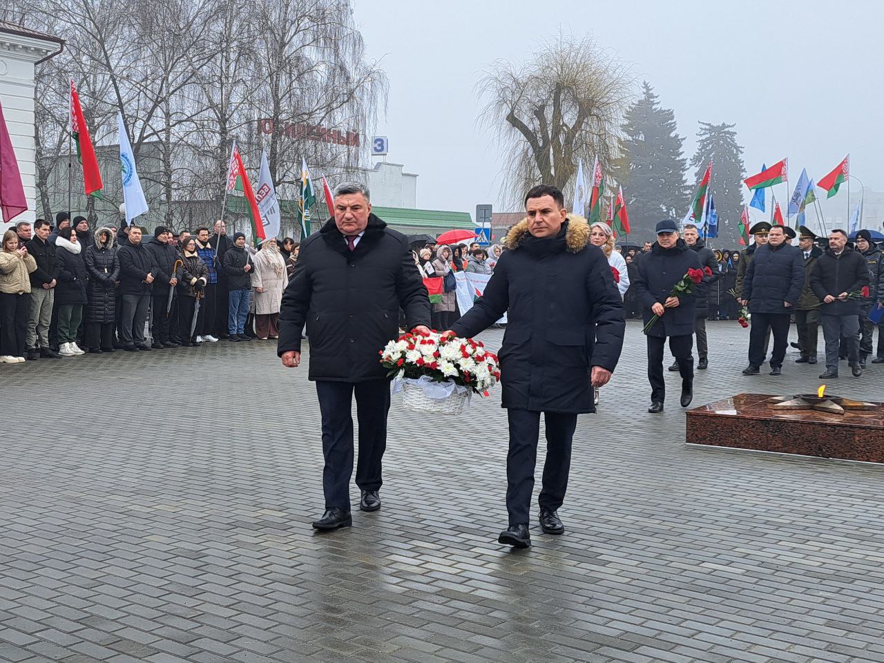 Собравшиеся почтили минутой молчания память павших героев, возложили цветы к подножию монумента.