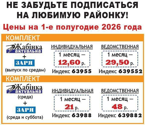 Заканчивается подписка на второй квартал 2026 года на комплект газет "Жабінка актуальна" + "Заря"