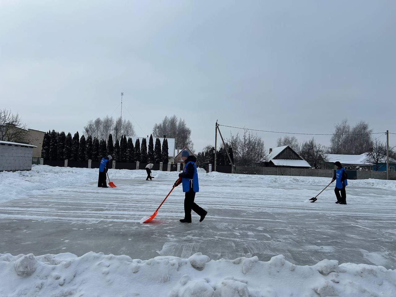 Трудовой десант в лице КУМПП ЖКХ «Жабинковское ЖКХ» и РК ОО "БРСМ" завершил подготовку ледового катка под открытым небом!