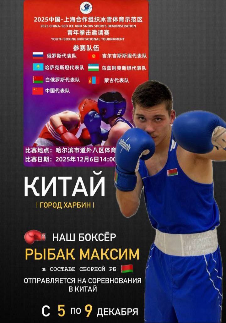 В китайском городе Харбин в ближайшее время пройдет престижный Международный турнир по боксу среди молодежи, который соберет перспективных спортсменов со всего мира.В составе национальной сборной Республики Беларусь в соревнованиях примет участие наш земляк Максим Рыбак. Спортсмен будет выступать в весовой категории до 71 кг.