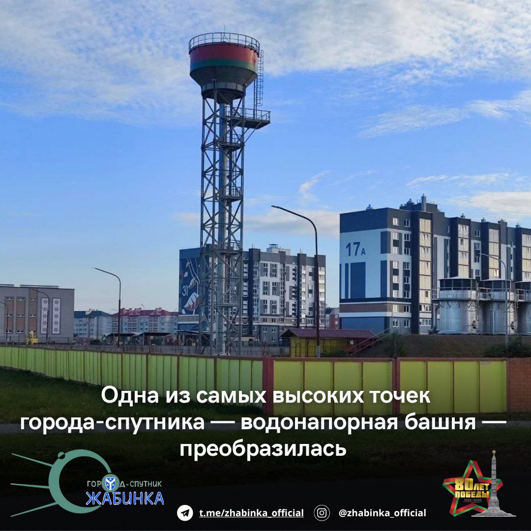 Одна из самых высоких точек города-спутника — водонапорная башня — преобразилась. Работники ЖКХ обновили её, вернув сооружению яркие цвета Государственного флага.